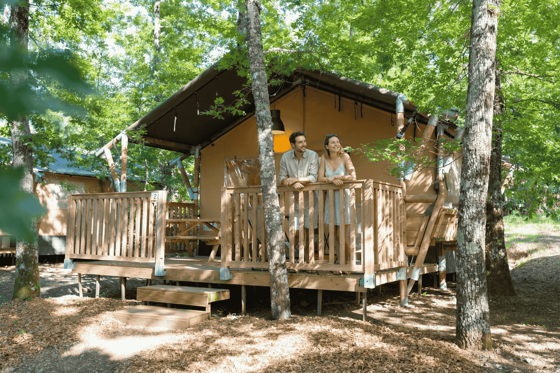 La Safari Tenten offre un'esperienza autentica a contatto con la natura, un soggiorno confortevole e avventuroso pensato per le famiglie o gli amici. Il suo design unisce calore e praticità mentre i suoi materiali, il legno e la tela, ti faranno sentire come a casa. L’alloggio presenta due camere, una cucina accessoriata, un'accogliente zona giorno e un bagno completo. Uno dei suoi punti di forza è la terrazza esterna, perfetta per trascorrere serate rilassanti. Non ci sono aria condizionata e riscaldamento, ma la tenda rimane una delle nostre soluzioni più esclusive e apprezzate. Gli animali purtroppo non sono ammessi, ma potrai comunque condividere una vacanza ricca di emozioni con i tuoi compagni di viaggio.